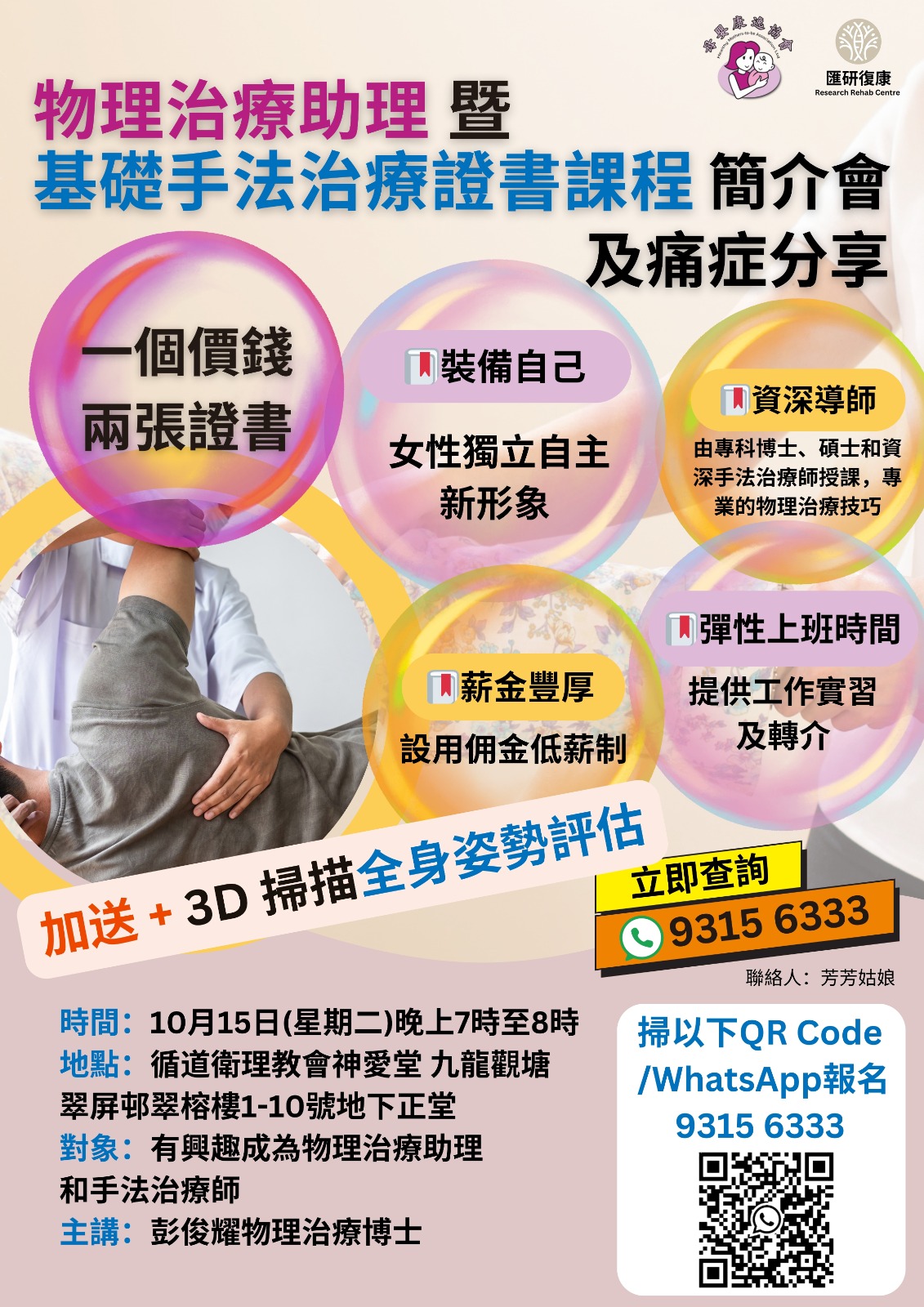 物理治療助理暨基礎手法治療證書課程簡介會及痛症分享會