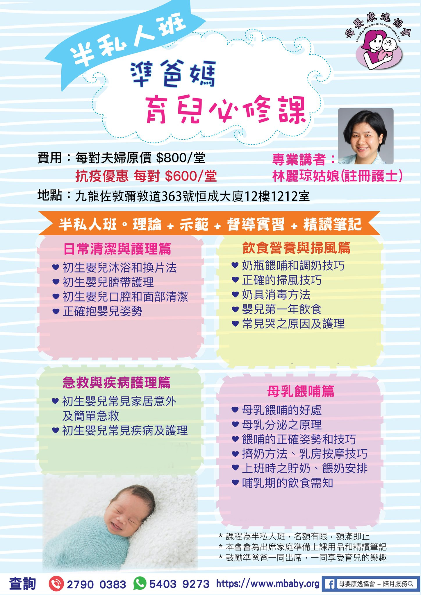 專業講者:林麗琼姑娘 (註冊護士、愛家寧執行董事、資深嬰兒按摩師、嬰兒瑜伽運動導師)