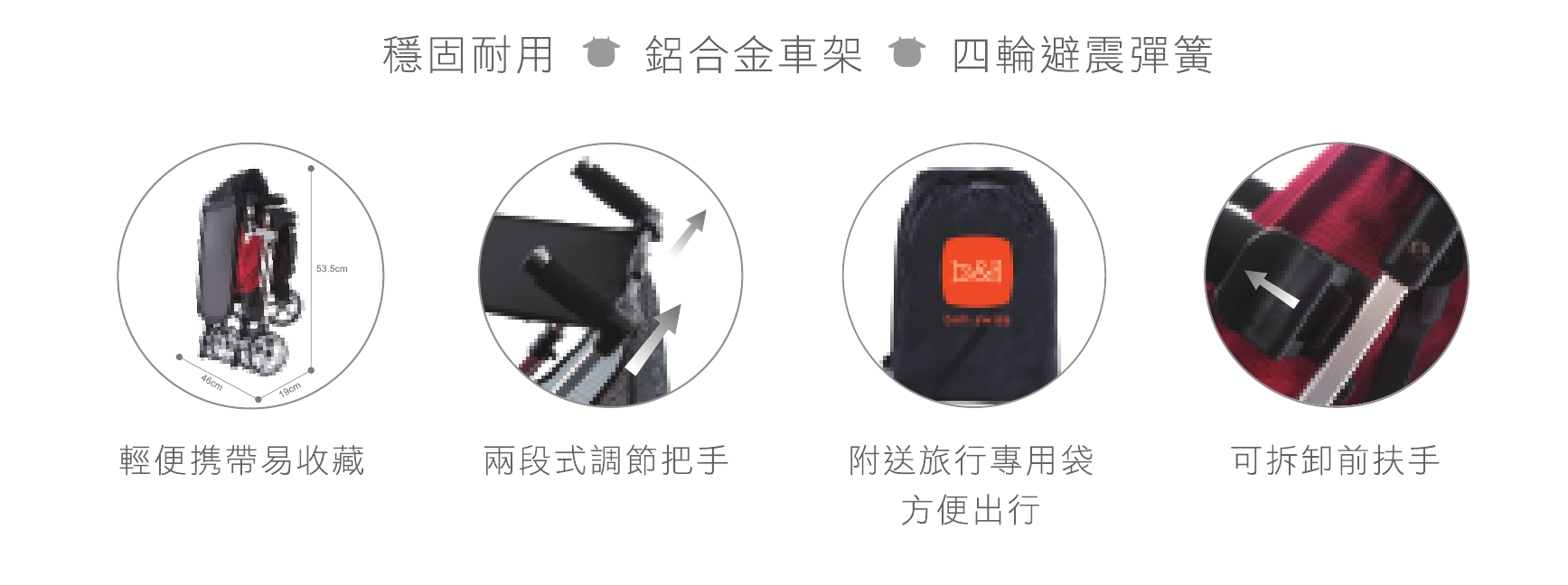 摺疊輕巧,摺疊尺寸: 45x19x53.5cm
