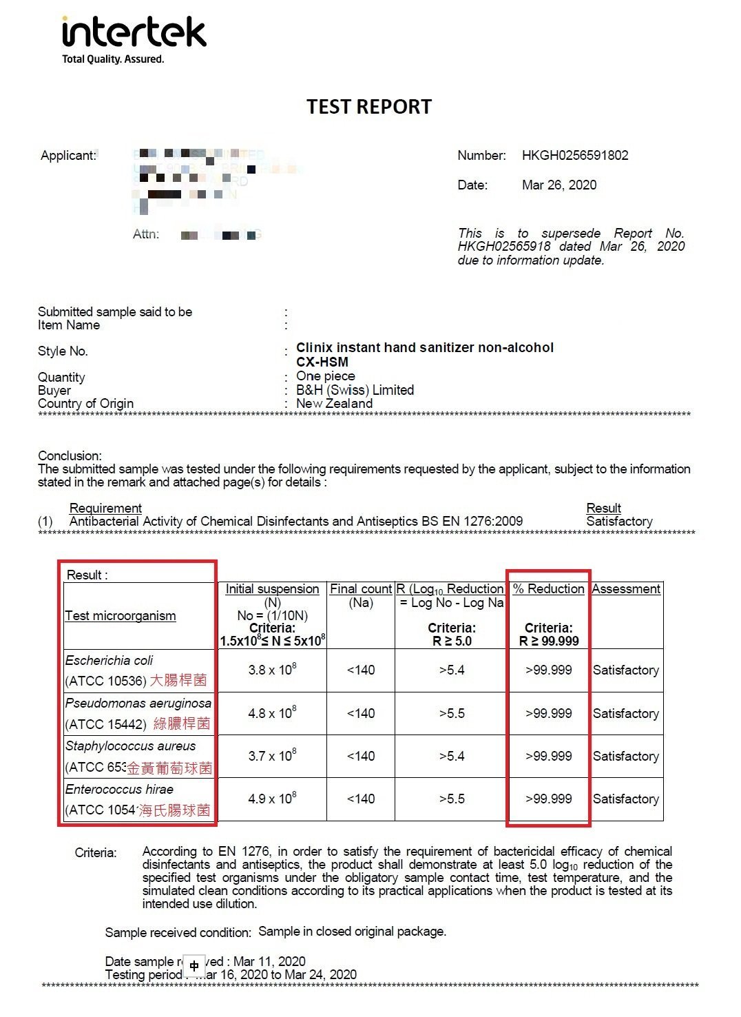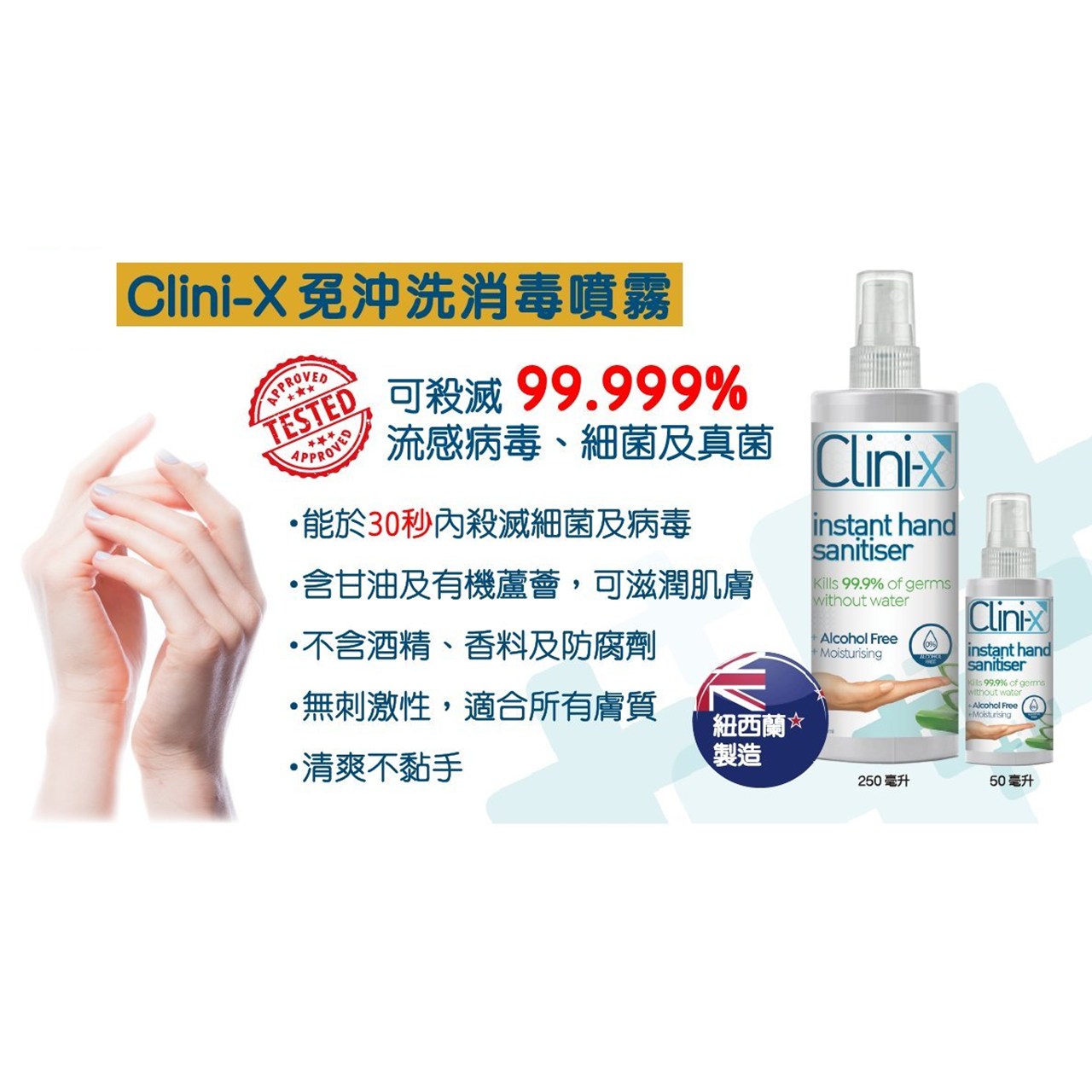 獲國際權威實驗室認證, 能於30身秒內殺死99.999%細菌及病毒