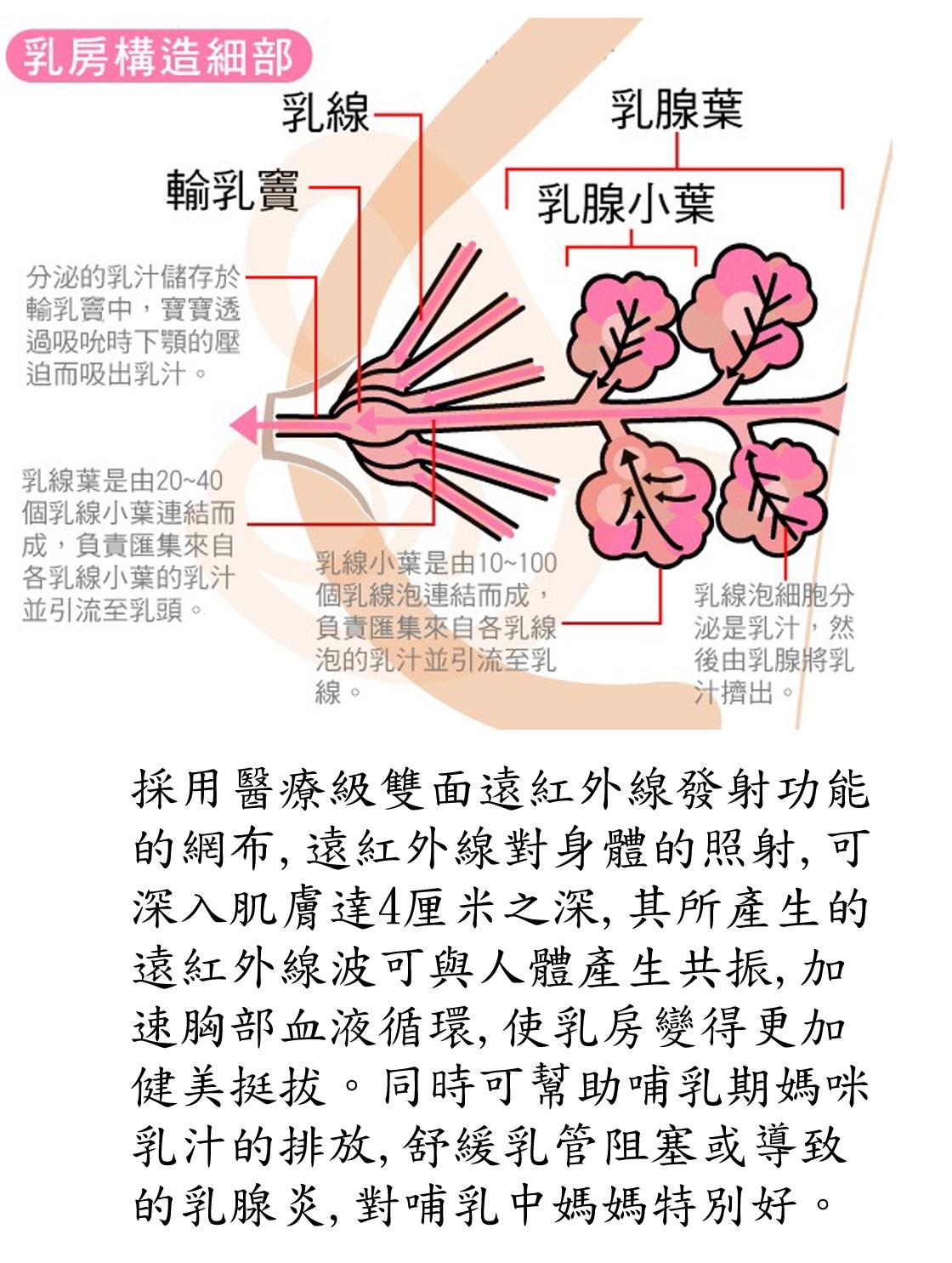 有益於預防及紓緩乳管阻塞問題,可配合FTecH遠紅外線乳墊使用,效果更顯著