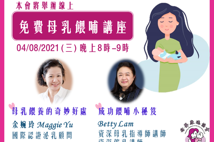 慶祝 國際母乳哺育週 ,本會將舉辦線上免費母乳餵哺講座~