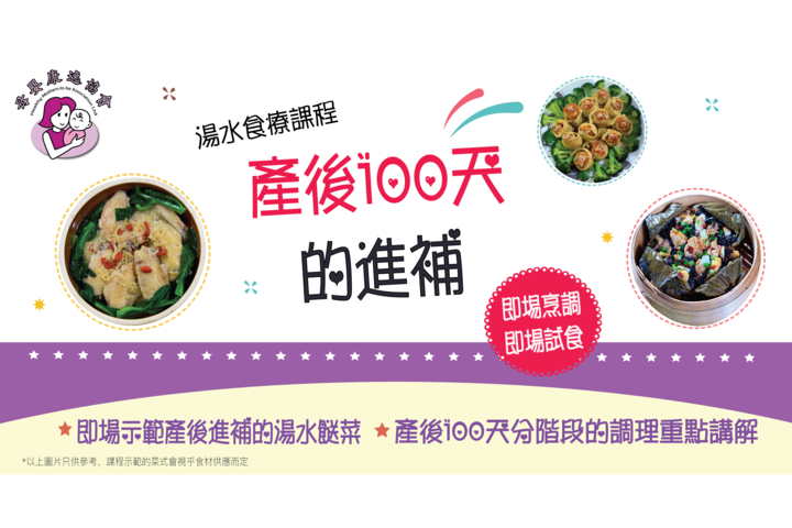 產後100天都是產婦補身的黃金期,陪月員陪伴媽媽坐月只有一個月的時間,而剛生產完只能溫和地補身,那之後的70天該怎麼辦呢?本課程由資深陪月員主講和示範滿月後的進補食療,無論上班媽媽或爸爸自己做也無難度!