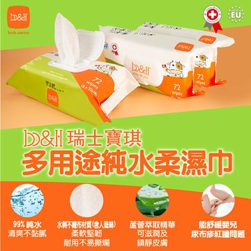 b&h 多用途純水柔濕巾(蘆薈萃取液) 72片 (由歐洲直接入口)